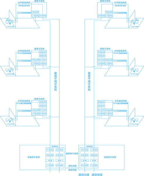 设备间子系统把中继线交叉处和布线交叉连接处连到应用系统设备上.由设备室的电缆及连接器和相关支撑硬件组成,,,把公用系统设备的各种不同设备互连起来。。。。
