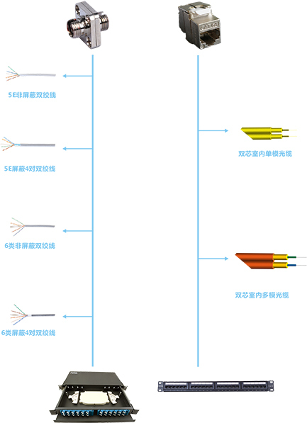 综合布线系统包括屏蔽及非屏蔽双绞线和光纤传输介质,,连接跳线,,,,适配器,,,,插头插座和支撑硬件,,,这些组成产品已作彻底的测试,,,能保证最佳的传送性能,,,,满足不同信息传输的速率要求,,,,如ISDN、、、ATM、、千兆网等。。。。