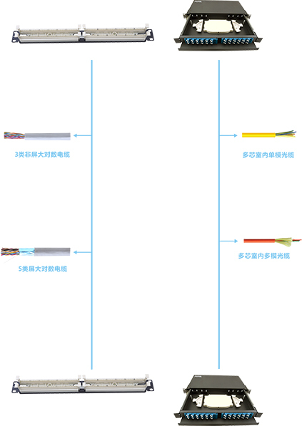 综合布线系统是一套标准的配线系统,,综合了所有的语音、、、数据、、、图像与监控等设备,,并将多种设备终端插头插入标准的信息插座内。。。即任一插座能够连接不同类型的设备,,,如微型计算机、、打印机、、电话机、、传真机等。。。非常灵活、、实用。。